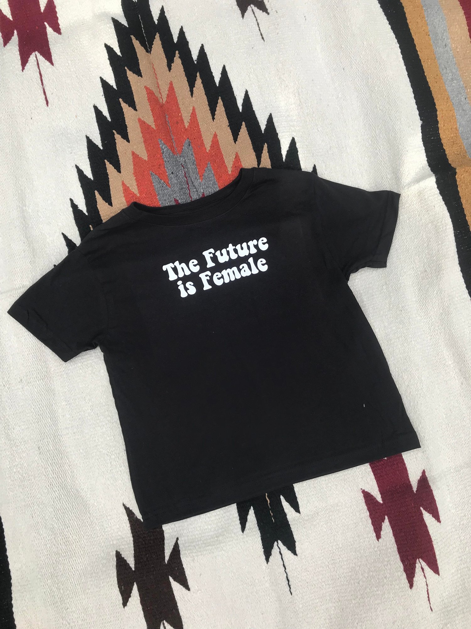 Screen printed on high quality, soft shirts that will hold up to those wild toddlers. The Future is Female, we are strong and brave and won’t be silenced.